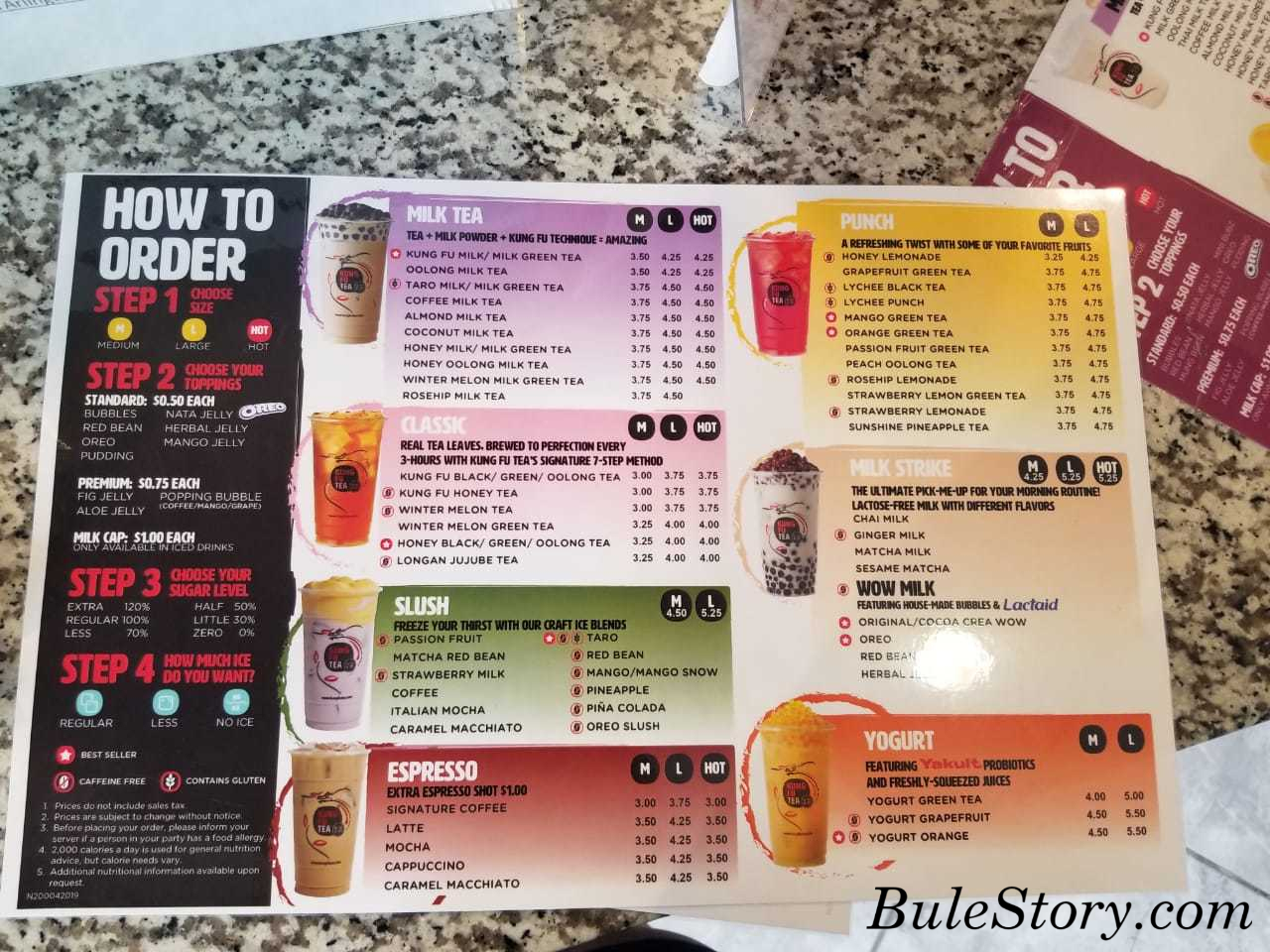 The total cost for a medium size of Kung Fu milk tea with bubble as a topping was about $5 after tax. The store is cute and nice, the service was pretty quick, the taste of the bubble tea was perfect as well. Overall nice place and good bubble tea so we will comeback again in another journey hahahahaha ![]()