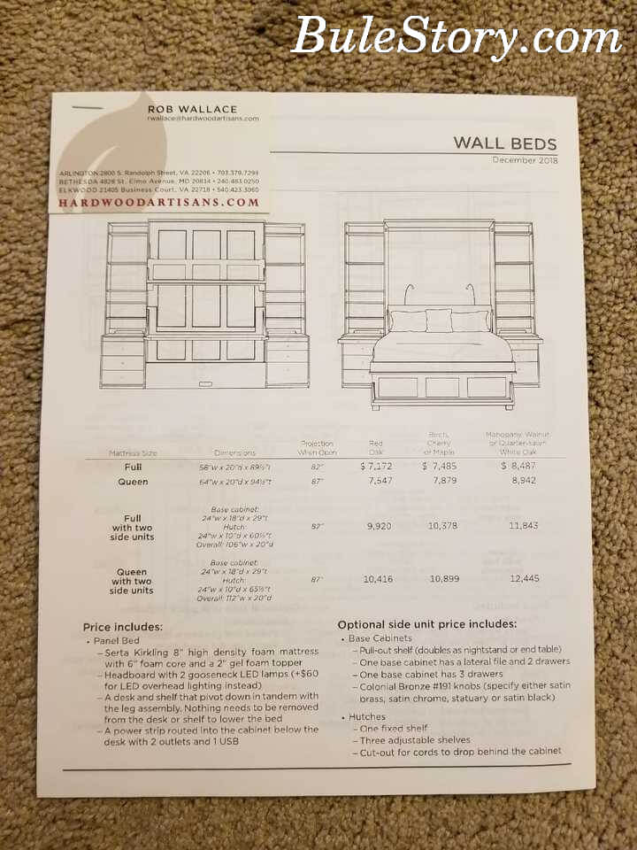 Ketika saya melihat ke kamar kami yang lainnya di tempat kami dan di kamar itu saya dan suami saya meletakkan kasur udara untuk berjaga-jaga jika kami memiliki tamu, kemudian saya mulai berpikir untuk mengganti kasur udara itu dengan sebuah kasur dinding atau kasur lipat, kemudian saya berbicara dengan suami saya tentang hal itu setelah saya melihat beberapa gambar online yang memiliki ide cemerlang untuk kasur. Kemudian suami saya berkata, “Saya tidak pernah berpikir tentang kasur Murphy sebelumnya, tetapi itu adalah ide yang sangat bagus” kemudian pada akhir pekan berikutnya kami pergi ke sebuah mal di daerah Tyson dan kami bertanya pada beberapa toko furnitur di sana tentang kasur murphy dan mereka semua tidak memiliki jenis kasur itu, tetapi salah satu staf mengatakan bahwa Hardwood Artisans memilikinya, dan kami berdua berkata “apakah itu di daerah Shirlington?” dan dia berkata “ya !!” dan kemudian kami berkata “oh ya kami tahu tempat itu”