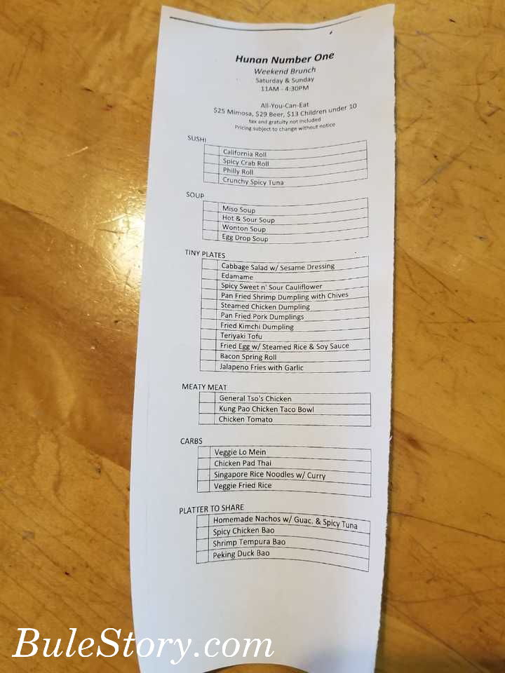 Hunan Number One Restaurant is an asian cuisine restaurant, they serve chinese food, japanese food and sushi sashimi located in Arlington. They had brunch special on the weekend.