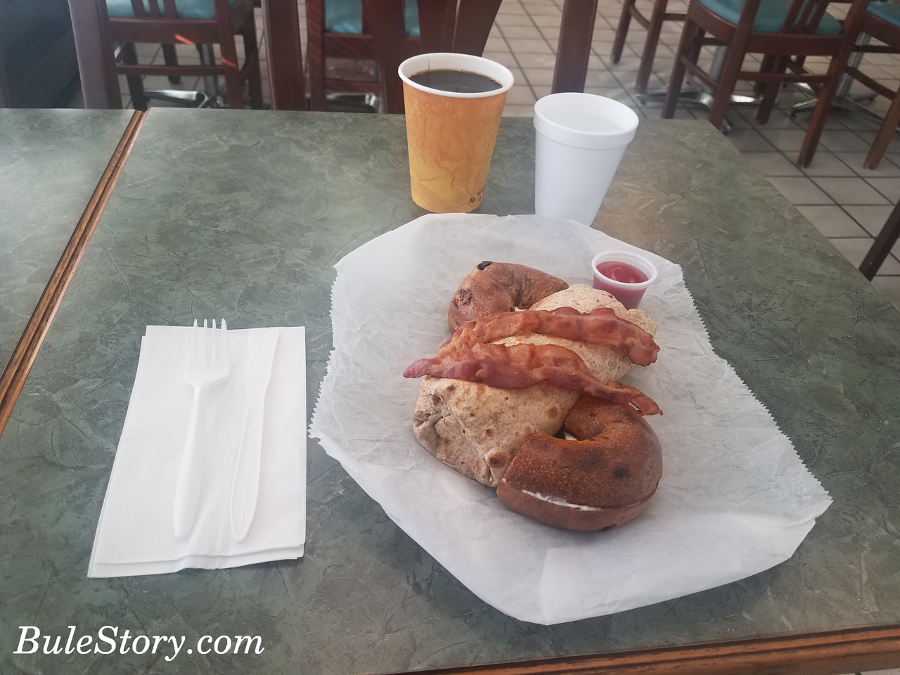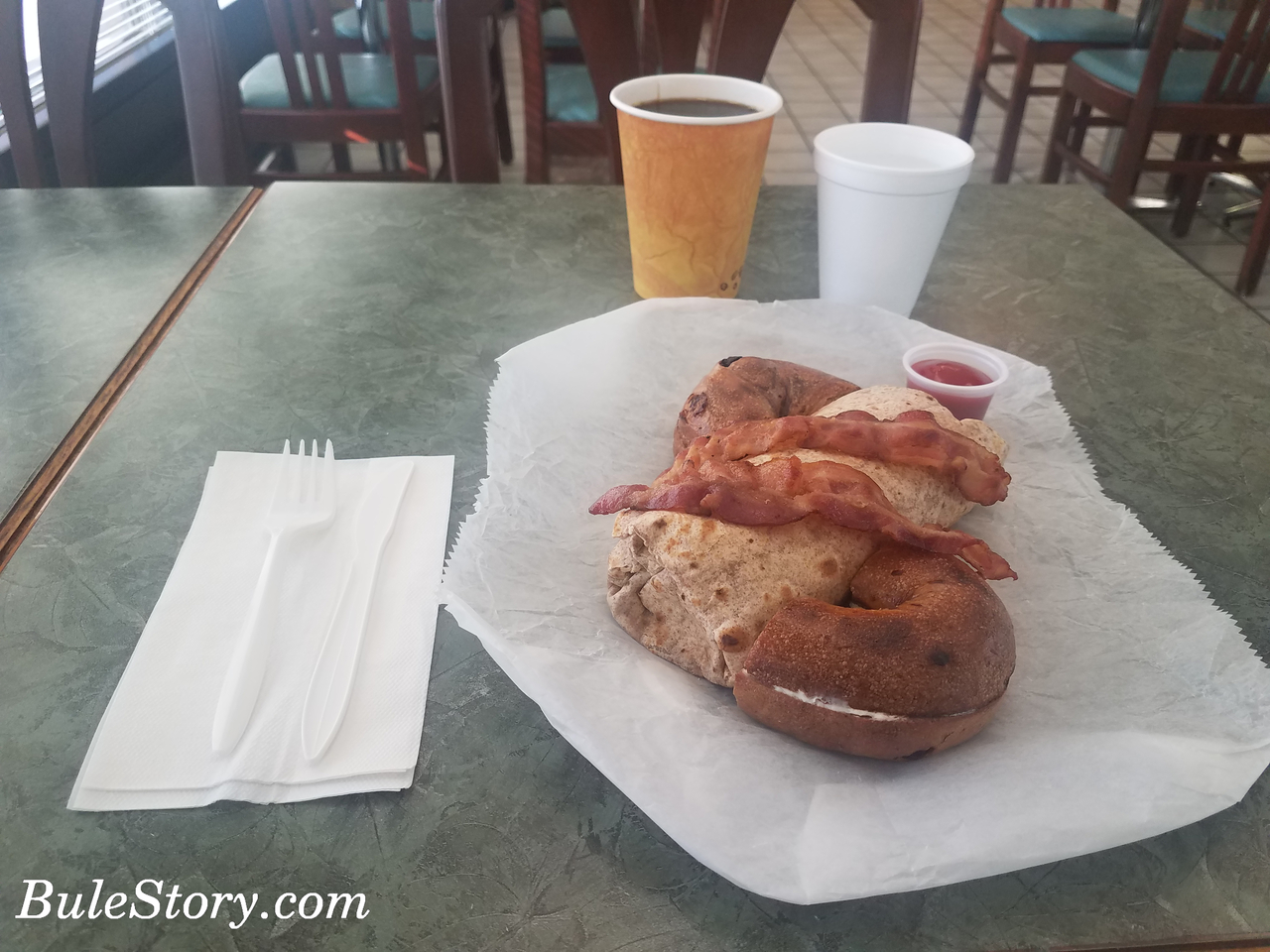 I got pancakes and my hubby got a burritos and a cream cheese bagel. Surprisingly the pancakes was really good it’s soft and fluffy and it’s a little chewy so it’s nice when you cut it. The burritos was good too and the bagel was ok. But i like their pancakes so much ![]()